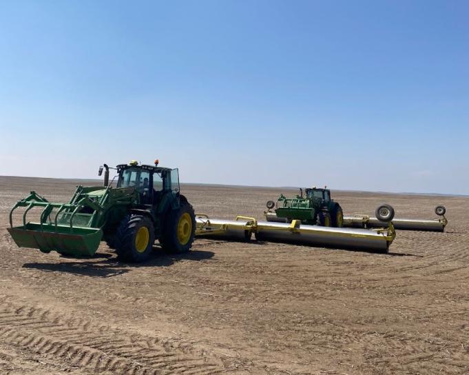 After the first 2 weeks the focus turned to seeding, the first job that we were given was treating the seed which was done by one of us usually along with another workman. After this we started preparing machinery for the seeding season, this involved helping calibrate the new 90ft seed drills which the farm was running this year and moving the land rollers and other equipment to the fields. Dustin had seeded 5000 acres of rye in the fall of 2023 and had planned on seeding an additional 13,000 acres while we were there. This included 1500 acres of durum wheat, 6000 acres of lentils and 5500 acres of canola or oilseed rape. The seeding lasted between 3 and 4 weeks and was broken up due to wet weather which the farm hasn’t had in 7 years. While the seeding was in full flow we were driving brand new 90ft seeders, 50ft land rollers and 132ft sprayers, this really hit home the sheer scale of farming out here to us and the investment made by farmers out here to farm at such a large scale.