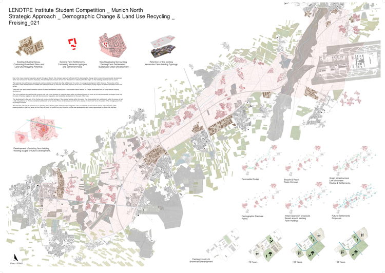 The task was to develop an inclusive development concept for a 25km long stretch of land between Munich Airport and the town of Dachau with a choice of four focus areas. Jamie Crean looked at the issue of Demographic Change and Land Use Recycling with a focus on an area to the east of Dachau.