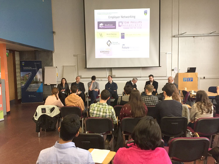 A specific Planning & Environmental Policy Careers Day was held in UCD Richview on Friday, 23 February. In addition to 1-2-1 CV and mock interview sessions, students listened to interesting career path stories from recent graduates of our Planning & Environmental Policy programmes. Students also had an opportunity to network over lunch with a number of major employers in the fields of Planning & Environmental Policy. Following this, a Q&A with employers was held. Here, students were able to ask employers about the nature of their work, desirable job applicant attributes and useful information on a host of other issues. It was clear from the day that our strong relationship with employers continues to position our graduates front and centre in the employment market.