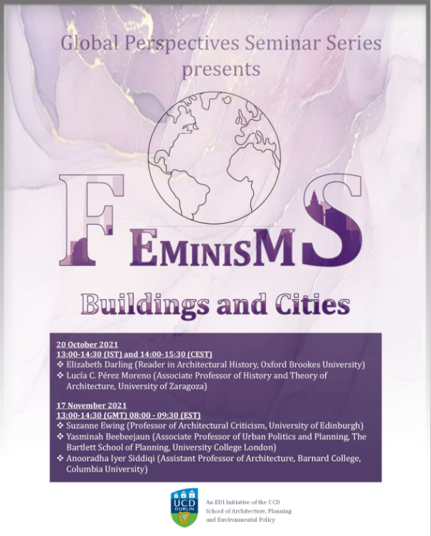 The Global Perspectives Seminar Series is an EDI initiative of the UCD School of Architecture, Planning and Environmental Policy. The aim is to invite diverse voices who offer different perspectives on architecture, planning, landscape architecture, environmental policy and urban design.
