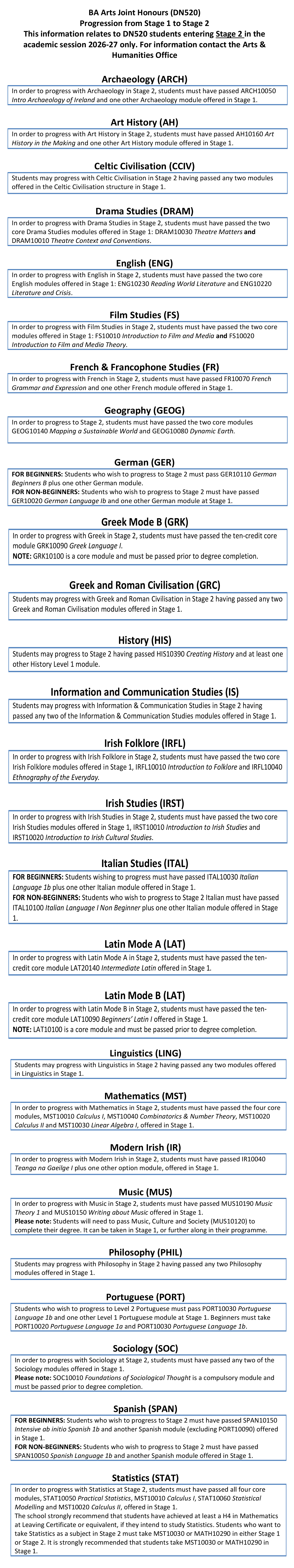 Information for BA DN520 Students entering Stage 2 in 2026-2027 (in programme)