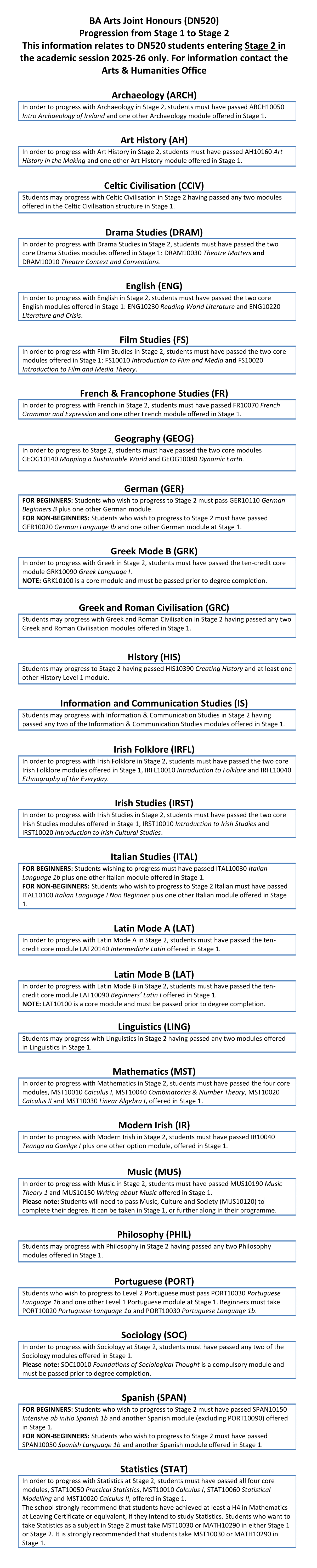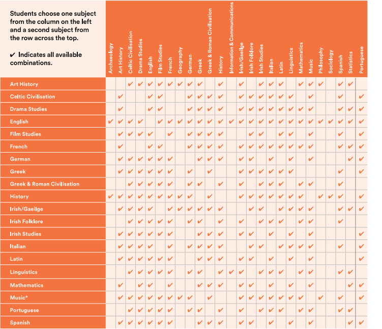 BA Arts (Joint Honours) DN520 Subject Combination Table