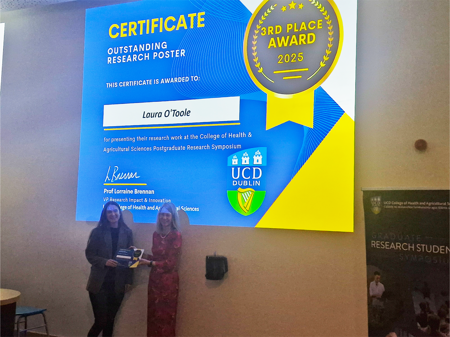 The symposium took place in the O’Brien Science Centre, and was a terrific showcase of the varied, interdisciplinary student research across the college. The event was opened by CHAS Vice Principal for Research and Innovation, Professor Lorraine Brennan. Following an afternoon of presentations and awarded prizes to the winners. Professor Brennan commented