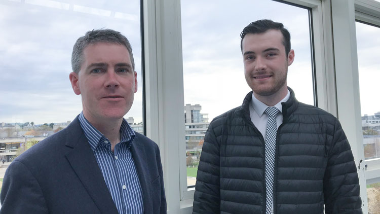 Alexander Buckley (Stage 3 student 2017-18), recipient of the Carthy Travel Award 2018, pictured with the award benefactor, Mark Carthy (UCD BE 1982).
