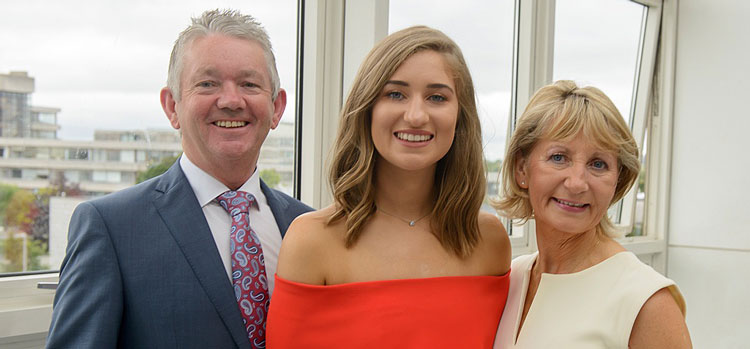 Katie Kilcoyne, BE 2018, recipient of the Carthy Graduate Research Project Award 2018, pictured with her parents.