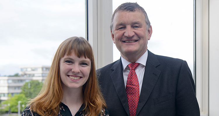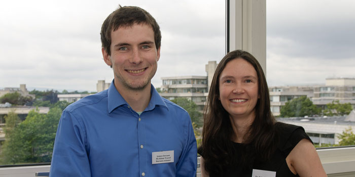 James Devane, recipient of the McAdam Travel Bursary 2015, with Dr. Kate McAdam, daughter of the benefactor, Martin McAdam.