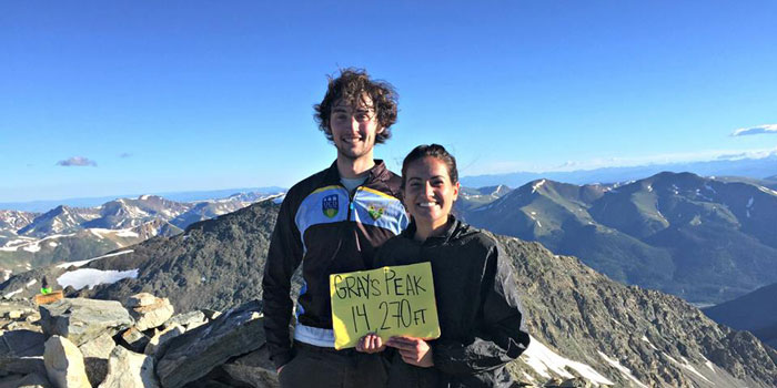 Colm Ó Riada, Pat McAdam Scholar in Chemical & Bioprocess Engineering 2015, pictured on Gray's Peak, Colorado, during his Scholarship placement at the Colorado School of Mines.