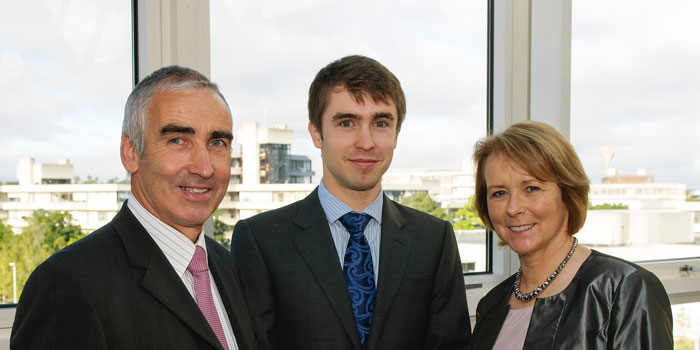 Pat McAdam Scholarship Winner 2013 Aisling Brazel, with Martin McAdam and Professor Don McElroy.