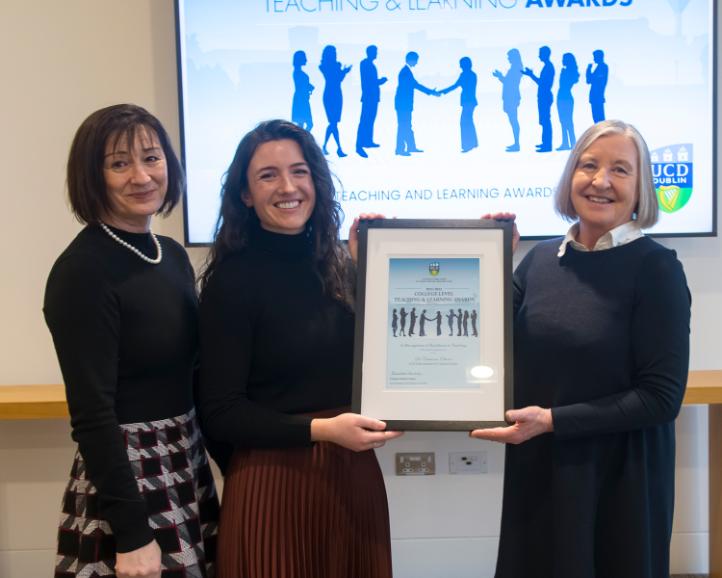 Congratulations to Dr Caitríona Osborne who was recently awarded a 2021/2022 College-Level Excellence in Teaching Award. The UCD Teaching & Learning awards “celebrate the achievements of colleagues who make an outstanding contribution in the pursuit of teaching excellence and the enhancement of student learning.” Dr Osborne was awarded a college-level award for her ongoing commitment to teaching excellence and her students.