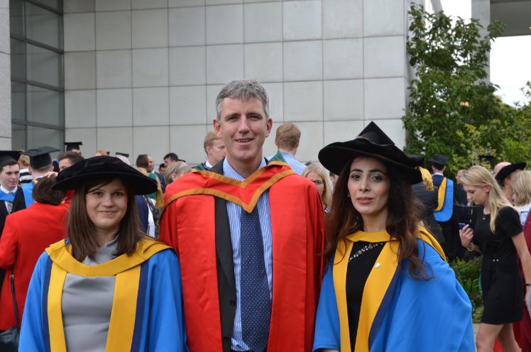 Dr Atteyeh Natanzi with Professor Eugene O'Brien and fellow graduate Dr Karol Martinovic