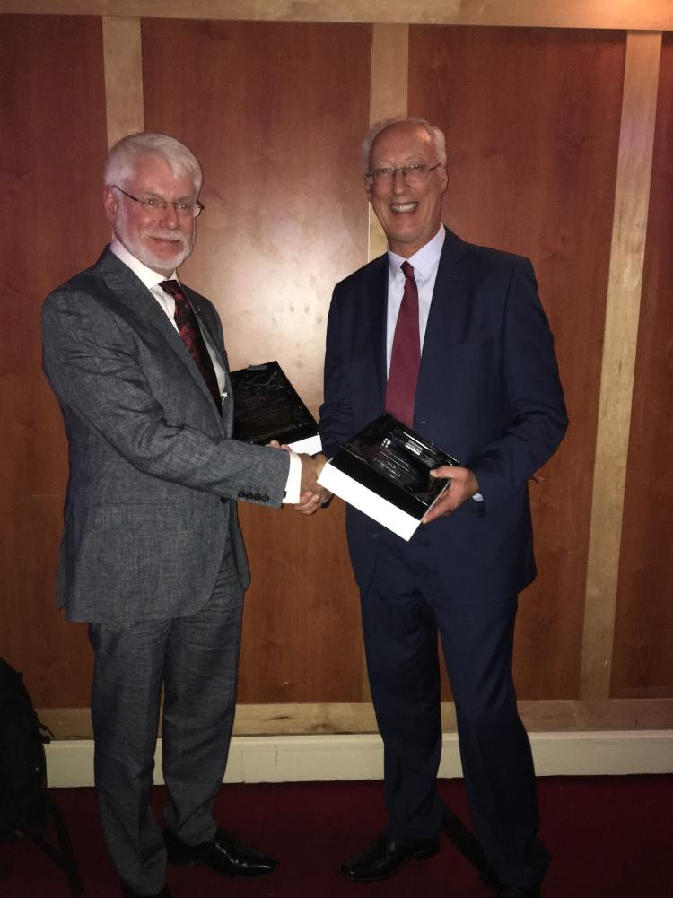 Professor Mark Richardson (University College Dublin) and Professor Roger West (Trinity College Dublin) were jointly awarded a life time achievement award from the Civil Engineering Research Association of Ireland (CERAI) for their outstanding achievements made over a sustained period in the disciplines of engineering. The collaboration of these men, together with Prof. Simon Perry, Seoirse MacCraith and others, resulted in the very successful first Colloquium on Concrete Research in Ireland at TCD in 1997. This was the foundation of what developed into the Civil Engineering Research in Ireland (CERI) conference series that is held every two years. When presenting the awards, Dr Jamie Goggins, President of CERAI noted that ‘So many researchers and engineering professionals in Ireland and beyond have experienced their encouragement, generosity, collegiality, high standards, organisational skills, and capacity to cajole. Both Profs Richardson and West have played significant roles in the development of concrete standards in Ireland and are well recognised for their international outreach. It is fitting that on the 21th anniversary of the conference series that they are both presented with the Lifetime Achievement Award for 2018.’