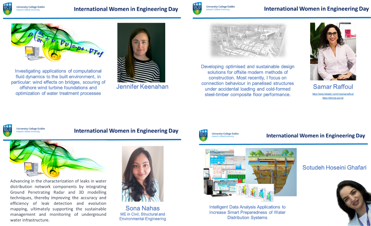 Today, 23rd June 2023, we celebrate International Women in Engineering Day. Each year, a different theme is chosen. The theme for 2023 is 'Make Safety Seen'. This year will mark the 10th celebration of International Women in Engineering Day. International Women in Engineering Day recognizes the great contribution of pioneering women in engineering who often go unnoticed. The School of Civil Engineering in UCD is lucky to work with such incredible women who make invaluable contributions to the industry. Here are just some of the exciting research projects that they are working on.