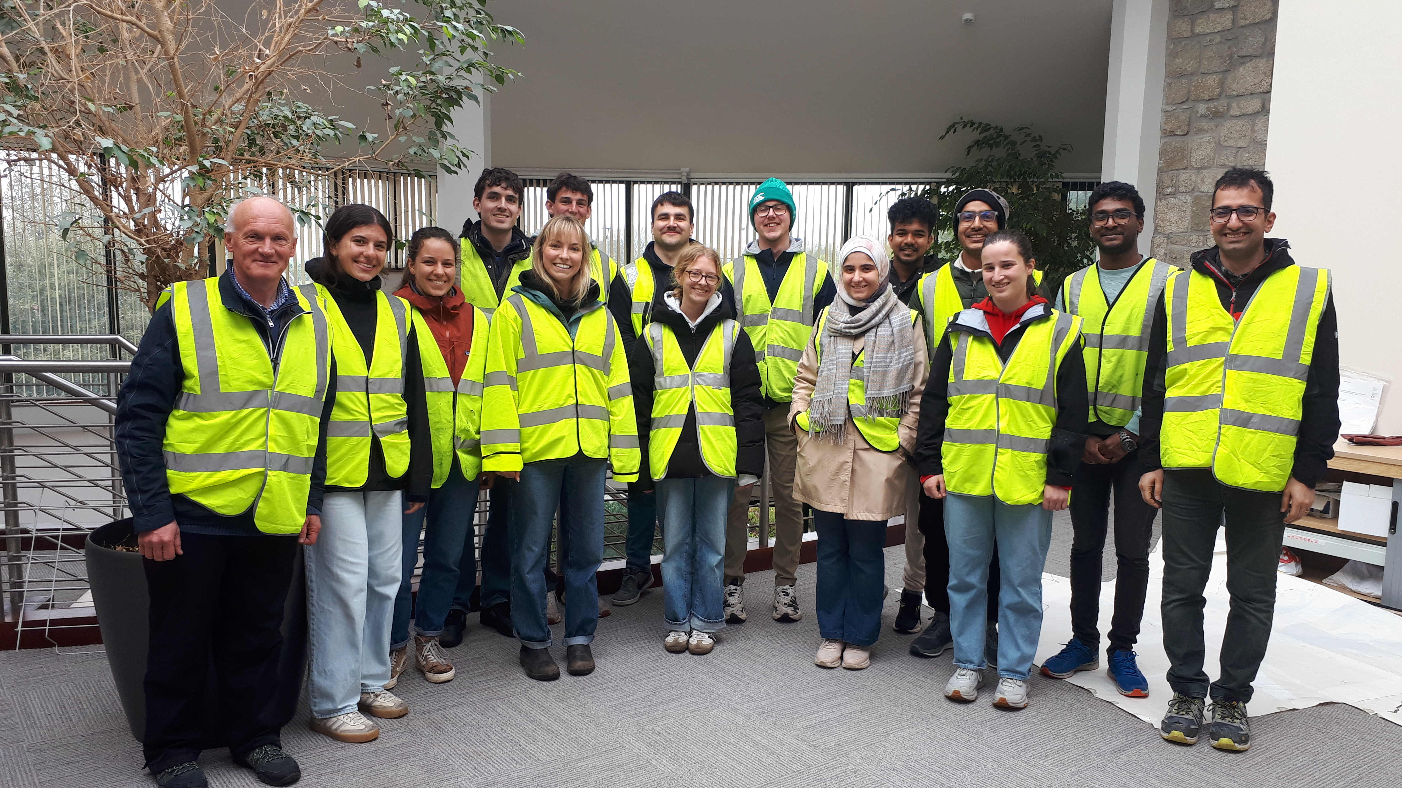 Class photo of students taking the CVEN40070 Water & Wastewater treatment processes module on a site visit to Uisce Éireann (Irish Water) Water Treatment plant at Ballymore Eustace, Co. Kildare on April 16, 2025. The water treatment plant at Ballymore Eustace is the largest water treatment facility in Ireland. The student group consists of masters students taking the ME (Civil) and MEngSc (Water & Envrionmental), as well as study abroad students from the USA, Canada and France.
