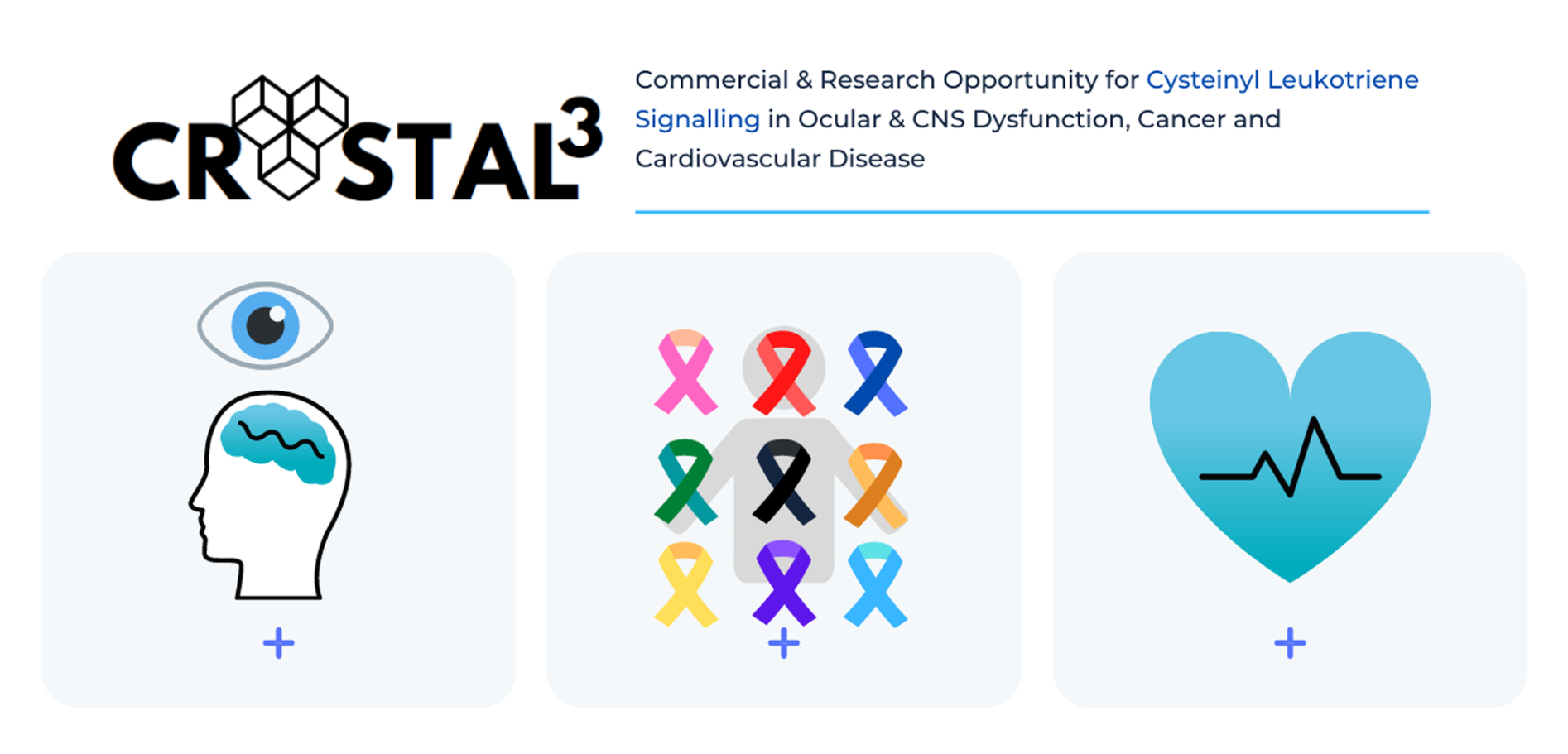 Currently, drugs targeting CysLT receptors are prescribed to treat airway inflammation. Recently, CysLT signalling was implicated in regulating cells in cancer, cardiovascular disease and diseases involving the eye and central nervous system. The CRYSTAL3 consortium will determine how CysLT signalling links to these diseases, then explore potential targeted therapies and how any products and services co-developed can be commercialised. LEARN MORE ABOUT CRYSTAL3 RESEARCH