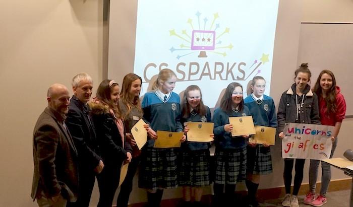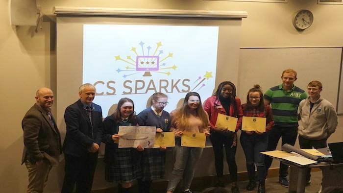 CS Sparks ended on a high with a graduation event in O'Brien Centre for Science for the TY students, their parents/guardians, CS Sparks volunteers and staff involved with the programme. Each of the girls was awarded a CS Sparks certificate by Joe Carthy. The was a real sense of achievement at the graduation which brought the four weeks of commitment and teamwork to a nice close. A huge well done is due to everyone involved in CS Sparks. We look forward to seeing the programme evolve over the next few years!