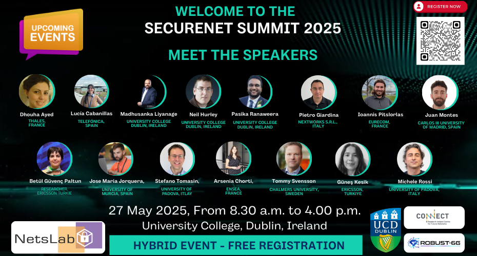 Hosted at University College Dublin, this flagship event is jointly organised by the Network Softwarization and Security Labs (NetsLab) at the UCD School of Computer Science, the CONNECT Centre, and the ROBUST-6G Project.