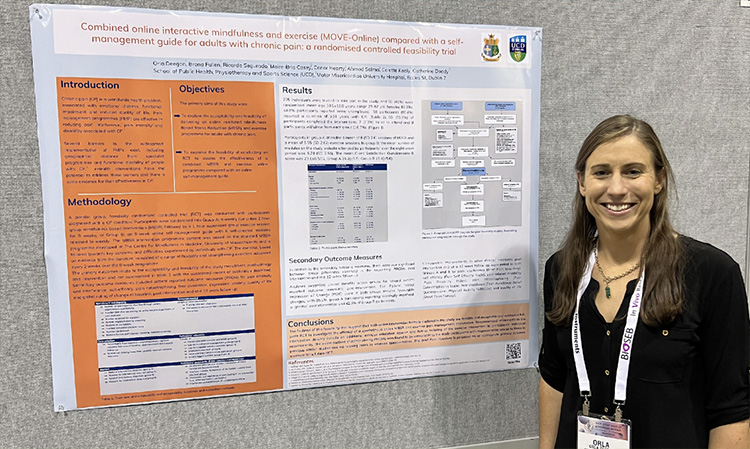Orla Deegan (PhD candidate) presented a poster, ‘Combined online interactive mindfulness and exercise (MOVE-Online) compared with a self-management guide for adults with chronic pain: a randomised controlled feasibility trial’. Orla Deegan poster