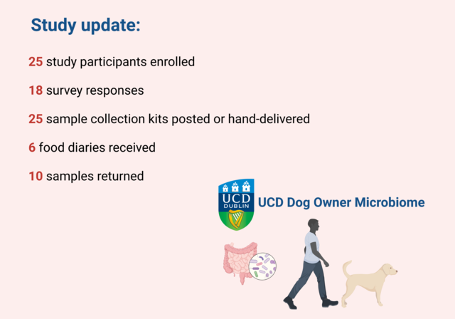 Out of approximately 60 emails we received expressing interest, 11 people could not participate, mainly due to either the dog or the owner having taken antibiotics, and a few people had gut health conditions which unfortunately excluded them from the study also. Thankfully, the interest in the study is quite large and we are looking forward to more people participating!