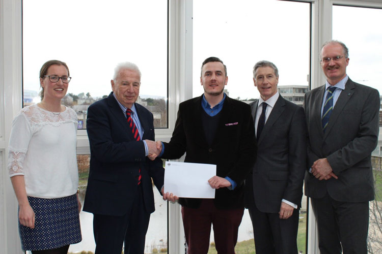 Dr. Paul Cuffe of the School of Electronic and Electrical Engineering receiving first prize in the UCD Engineering Mobility Design competition for his submission.