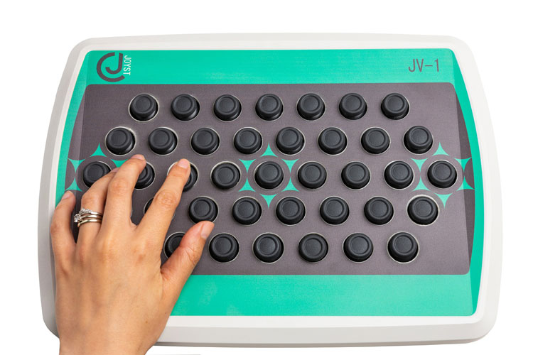 The Joyst JV-1 MIDI controller provides an array of gamer-style thumb joysticks to give more expressive possibilities for electronic musicians. Notes are played by striking the joysticks, if one is then rotated, this pitchbends that note up or down. Using joysticks in this role is a very new approach for a MIDI controller, which significantly increases a musician’s ability to play with subtle intonation and expressive flourishes.