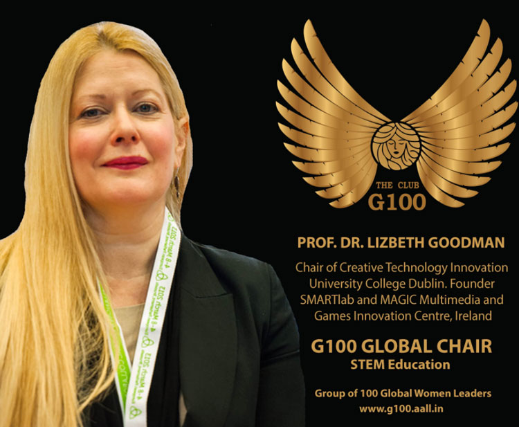 SMARTlab/IDRC director Prof Lizbeth Goodman named alongside Nobel Laureates, Former Presidents and Ministers in the G100 Group of Global Leaders working for Women’s Equity and Transformational Change: Global Leader for STEM Education.