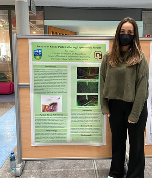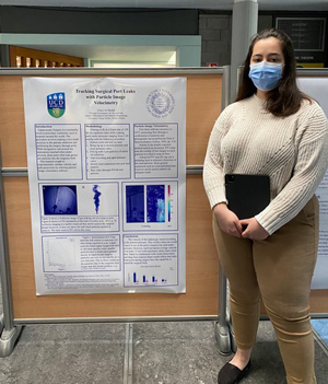 Grace Al-Sheikh from Syracuse University worked with Dr Kevin Nolan from the UCD School of Mechanical & Materials Engineering on a project titled Tracking Surgical Port Leaks with Particle Image Velocimetry. Laparoscopic Surgery is a minimally invasive procedure commonly used in hospitals around the world. The procedure involves making a few small incisions in the patient’s abdomen and performing the surgery through ports. While designed to seal around the instruments inserted when under pressure, these ports often leak gases and particles into the surgeon’s field. This research sought to experimentally validate velocity and path projections by utilising particle image velocimetry software. |
