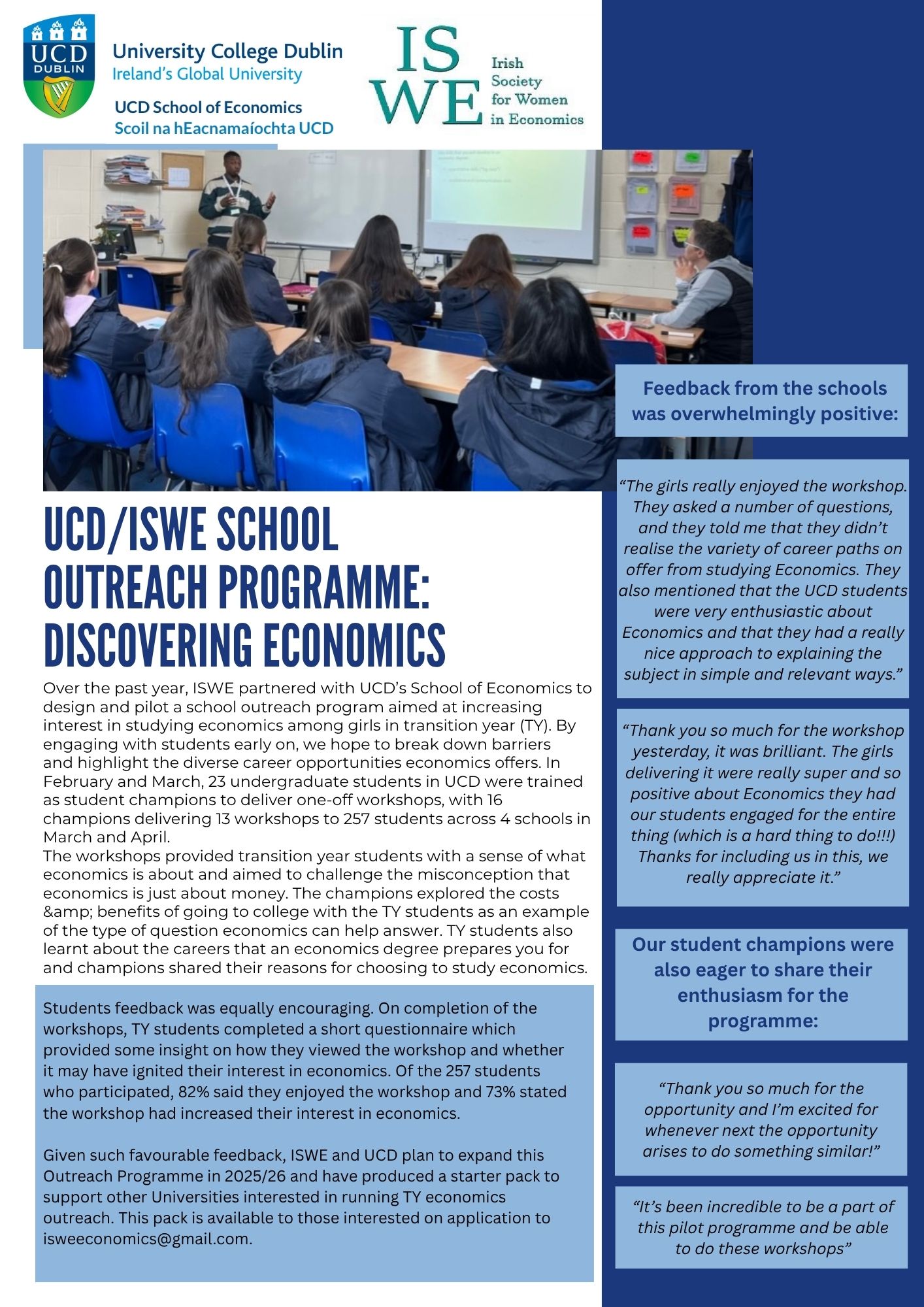 UCD/ISWE School Outreach Programme: Discovering Economics