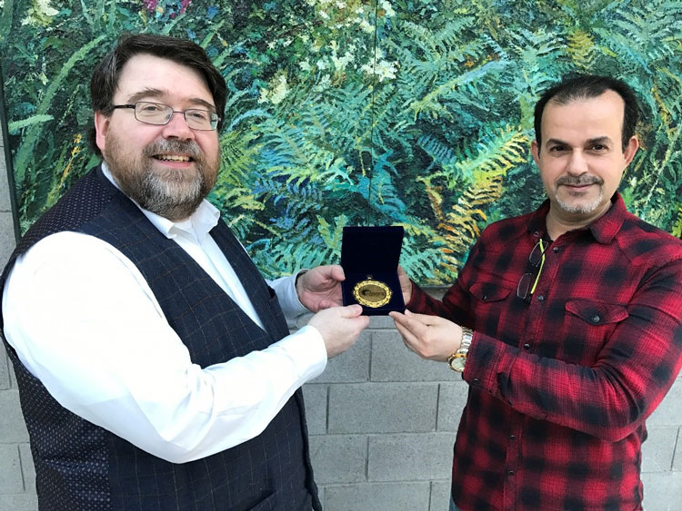 In a ceremony held at University College London (21/1/18) Dr Ra'ed Malallah, (who recently completed his doctorate in optical engineering at the UCD School of Electrical and Electronic Engineering), was presented with a medal and certificate by the Iraqi Minister of Higher Education and Scientific Research, Dr. Abdul Razzaq Al Essa. The award was given in recognition of the impact of his published work in the areas of photopolymers, holography and self-written waveguides. Dr Malallah is a member of academic staff at Basra University.