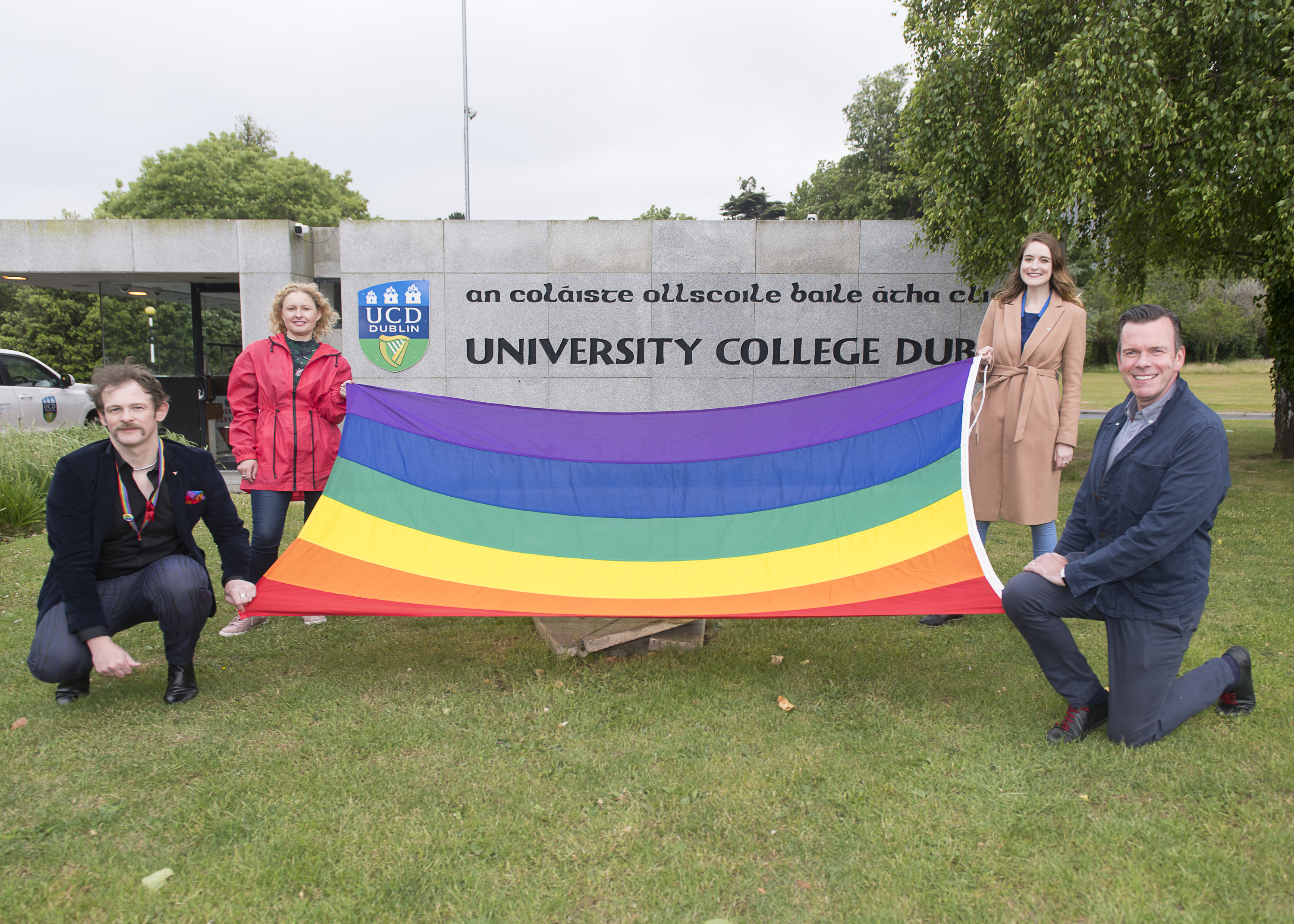 Pictured: Dr John Gilmore, Assistant Professor, School of Nursing, Midwifery & Health Systems, Join Grand Marshall, Dublin Pride 2020, Dr Paul D'Alton, Associate Professor School of Psychology, Chair of UCD LGBTI Sub-Group, Marcellina Fogarty, Strategic EDI Manager and Eimear O' Reilly, EDI Project Officer
