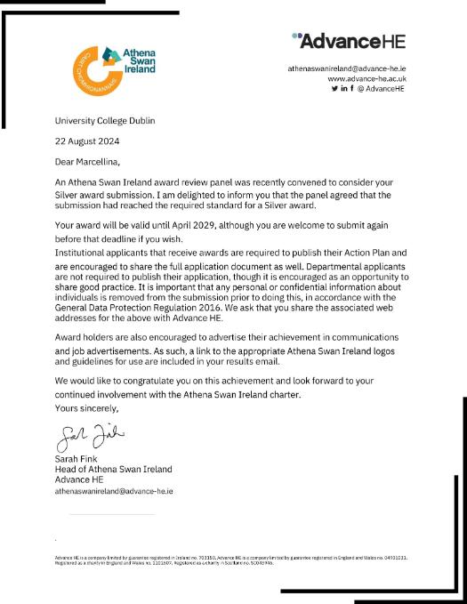 Advance HE Ireland’s Feedback on UCD’s Silver Institutional Athena Swan Application