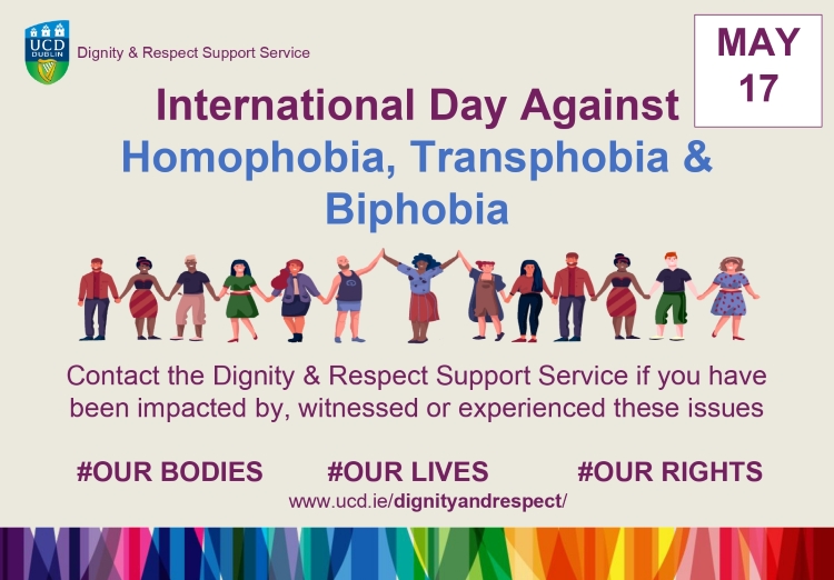UCD is committed to ensuring that our University community is LGBTI inclusive. We all have a responsibility to create an inclusive University culture that reflects UCD’s Equality, Diversity & Inclusion Policy. You can put this commitment into practice by being visible in your support for LGBTI inclusion in UCD. This lets colleagues and students know that they can feel free to be themselves and share their sexual orientation, gender identity or that they are intersex with you. This day raises awareness of discrimination and violence against LGBTI people worldwide.