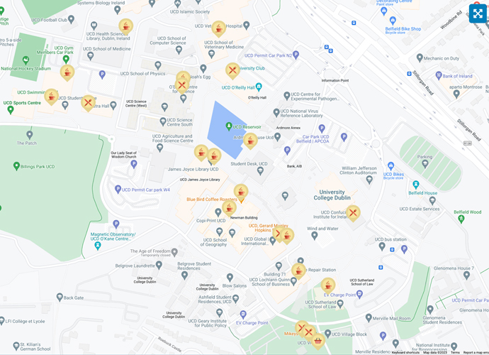 Check all the restaurants, coffee shops and retail outlets in UCD. You can get directions directly to those outlets.