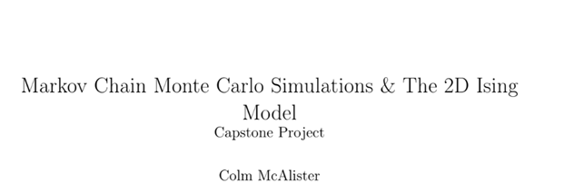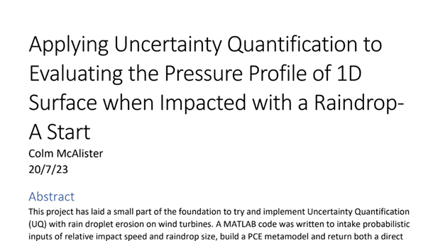 I have just my completed my undergraduate studies, obtaining a degree theoretical physics from Trinity College Dublin. I have developed a strong mathematical skill set throughout this course, including a good grounding in numerical analysis. My final year Capstone project (attached) explored Markov Chain Monte Carlo algorithms and their implementation in different languages, namely Python and C++. I also did a summer research project with engCORE at SETU on modelling raindrop erosion on wind turbine blades.
