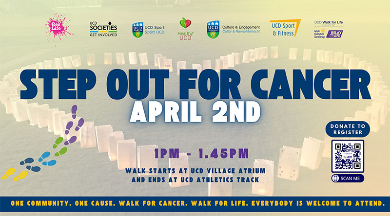 Join us on Wednesday April 2nd at 1pm for a short lunchtime walk to raise money for the Irish Cancer Society. We are teaming up with the UCD Relay for Life team who are doing trojan work raising funds for this worthy cause over the past number of years.