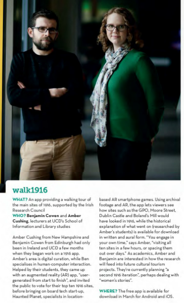 The research team behind this app aim to explore the convergence of human–computer interaction (HCI), digital curation and preservation in the field of cultural heritage tourism technology as well as understanding how this technology impacts on the tourist/user experience. The research will provide an app available for the Centenary as well as learning experiences for postgraduate students, with HCI and digital curation students working together on app content development and evaluation.