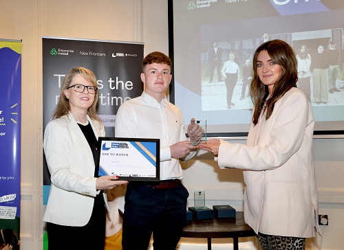 Pictured (l-r) are Susanne L’Estrange, New Frontiers Programme Manager, IADT Media Cube, Andrew Moore, Evogen, winner of the One to Watch Award sponsored by NovaUCD and Michelle Doyle, Senior Manager, Strategic Innovation Partnerships, NovaUCD.