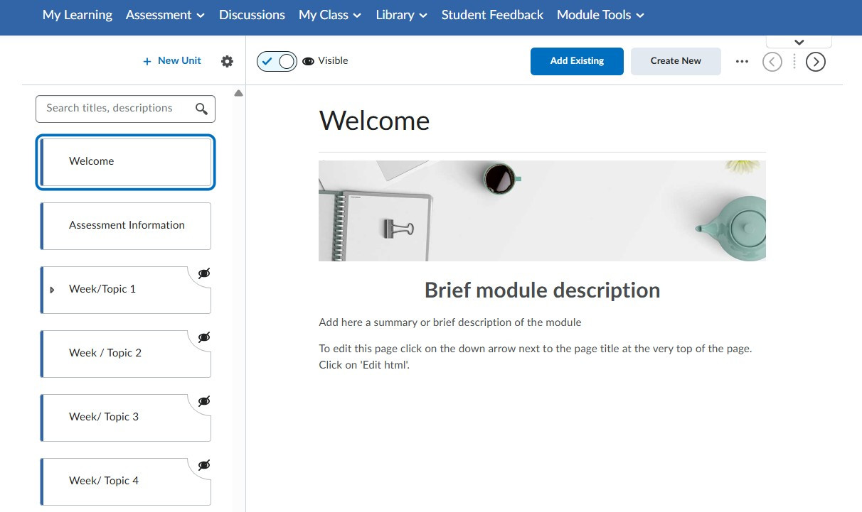 Module Coordinators can continue to use the Learning and Introduction units if desired, or can delete the units if preferred.