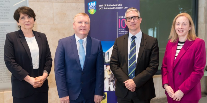 (L to R President of UCD, Prof Orla Feely, Commissioner Michael McGrath, Dean of Law, Prof Laurent Pech, Principal of the College of Social Sciences & Law, Prof Niamh Moore Cherry)