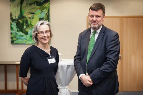 The UCD Sutherland School of Law, in conjunction with the School of Politics, returned recently from a very successful European Law and Politics Field Trip to the European Institutions in Brussels and Luxembourg. To mark the visit, H.E. Mr. Éamonn Mac Aodha, Ambassador of Ireland and UCD Law alumnus (pictured below with Prof Imelda Maher), hosted an alumni reception in the Embassy of Ireland in Brussels.