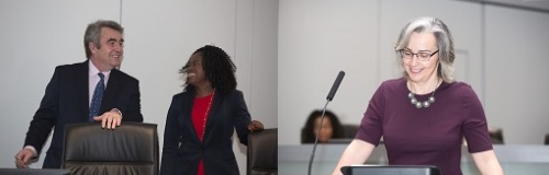 The occasion gave the School the opportunity to take stock of what has been achieved since moving to the state-of-the-art facilities, made possible by the generous support of many present that evening.  A short video showcased the strength of the community that has been built in the School, the world-class teaching and learning facilities on offer and an overview of the breadth of research output by faculty in that time (video link (opens in a new window)here).  President Deeks delivered a powerful (opens in a new window)speech about the School’s achievements and was followed by speeches from two outstanding students, Ms Joy Tendai Kangere and Mr Francis McNamara with Professor Imelda Maher, incoming Dean in September 2017 concluding. In her speech, Joy, a BCL student originally from Zimbabwe gave a moving account of her experiences studying in the UCD Sutherland School of Law. Francis, a graduate from 2014 who has recently returned to study an LLM in International Commercial Law and is the School’s current Healy Scholar also gave a very engaging account of his time.  The two students were extremely well received by the distinguished audience both for the excellence of their speeches and the passion with which they delivered them.