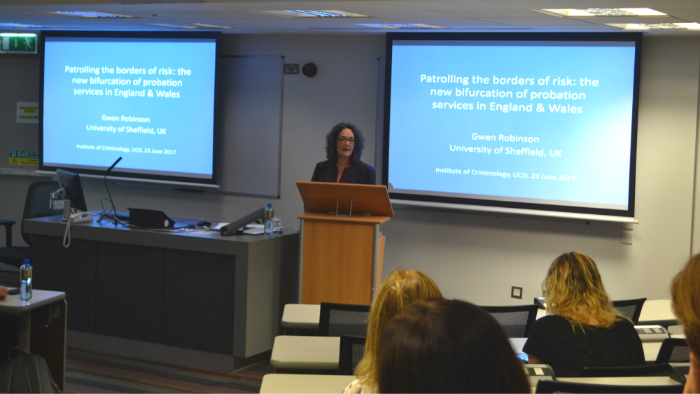 Dr Gwen Robinson, ((opens in a new window)Sheffield Law School, The University of Sheffield​) delivered the inaugural lecture in the UCD Institute of Criminology lecture series, entitled 'Patrolling the borders of risk: The new bifurcation of probation services in England & Wales' on Friday 23 June 2017.