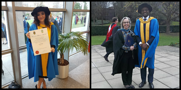 Dr Louise Rooney completed her dissertation on "Gendered perspectives: Exploring criminal justice practitioner responses to male & female offenders" under the supervision of Dr Deirdre Healy. Dr Osayomwanbor 'Bob' Enofe wrote his dissertation on "Legal Transplants, Cartel Criminalisation, and Developing Countries: the Case of Nigeria." under the supervision of Prof Imelda Maher, MRIA.