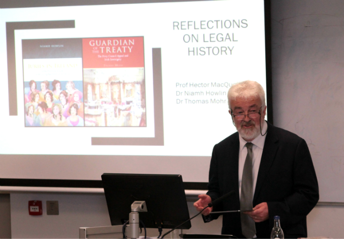 Prof Hector MacQueen speaking at the Sutherland School of Law