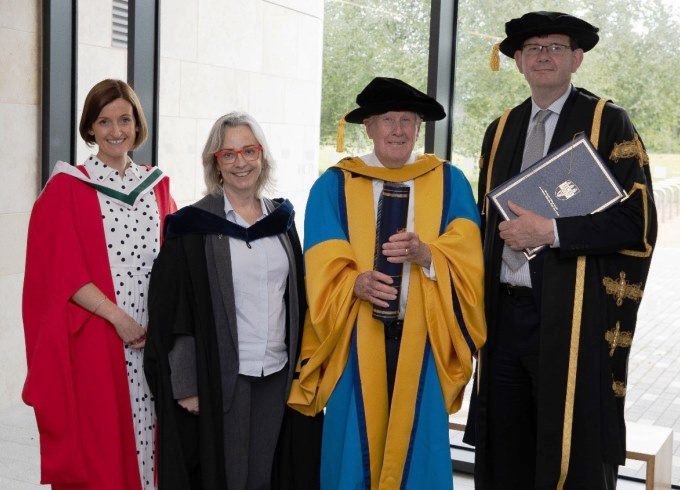 The Acting President of UCD, Professor Mark Rogers, along with the Dean of Law, Dr Niamh Howlin, congratulated Professor John D Feerick on the occasion of the conferring of an honorary Degree of Doctor of Law.  Professor Imelda Maher, former Dean of Law, delivered an inspiring citation at a conferring ceremony held in the Moot Court at the Sutherland School of Law on 14 June 2022.  Professor Feerick's family and friends, students from Fordham Law School, Queen’s University Belfast and UCD Sutherland School of Law, UCD faculty and members of the judiciary were in attendance.