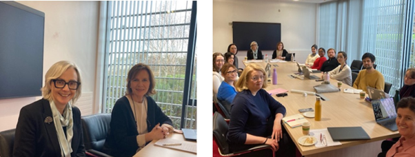 (l) Prof Imelda Maher with Judge Síofra O’Leary, (r) Prof Cathryn Costello and PhD researchers from Sutherland School of Law
