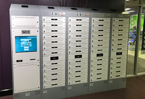 • Laptops must be plugged in when returned to the cabinet. Laptops that are not plugged in will remain on your Library account and accrue charges.