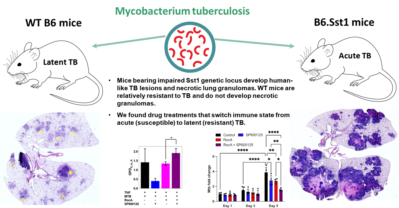 Using transcriptomics data and the unique cSTAR approach, the researchers distinguished TB-susceptible and TB-resistant immune response patterns in mice and identified compounds that enhance the resistance of the TB-susceptible mice to virulent M. tuberculosis, converting susceptible to resistant states. The article describing this work is (opens in a new window)published in Science Advances.