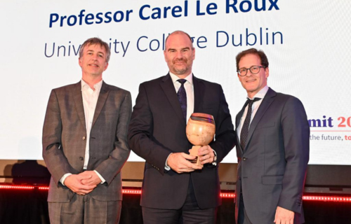 Professor Carel Le Roux, an expert on how “the gut talks to the brain” to inform safer and more effective treatments of obesity, has won the prestigious (opens in a new window)Irish Research Council (IRC) Researcher of the Year Award for 2023.