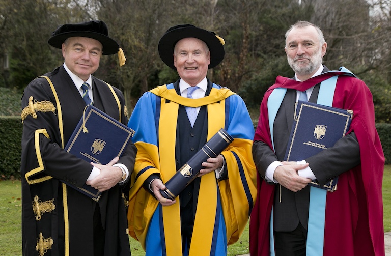 University College Dublin has awarded honorary degrees to diplomat and peacemaker Tim O’Connor, labour rights advocate Kieran Mulvey and economist Professor Michael J. Brennan.