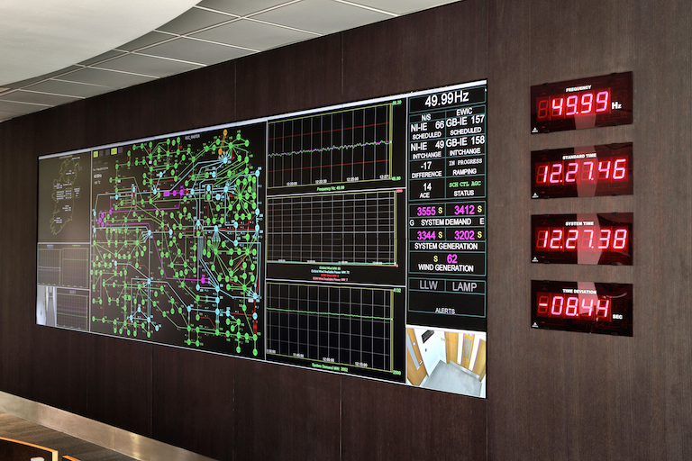 Pictured top: a real-time monitoring screen in an EirGrid control room.